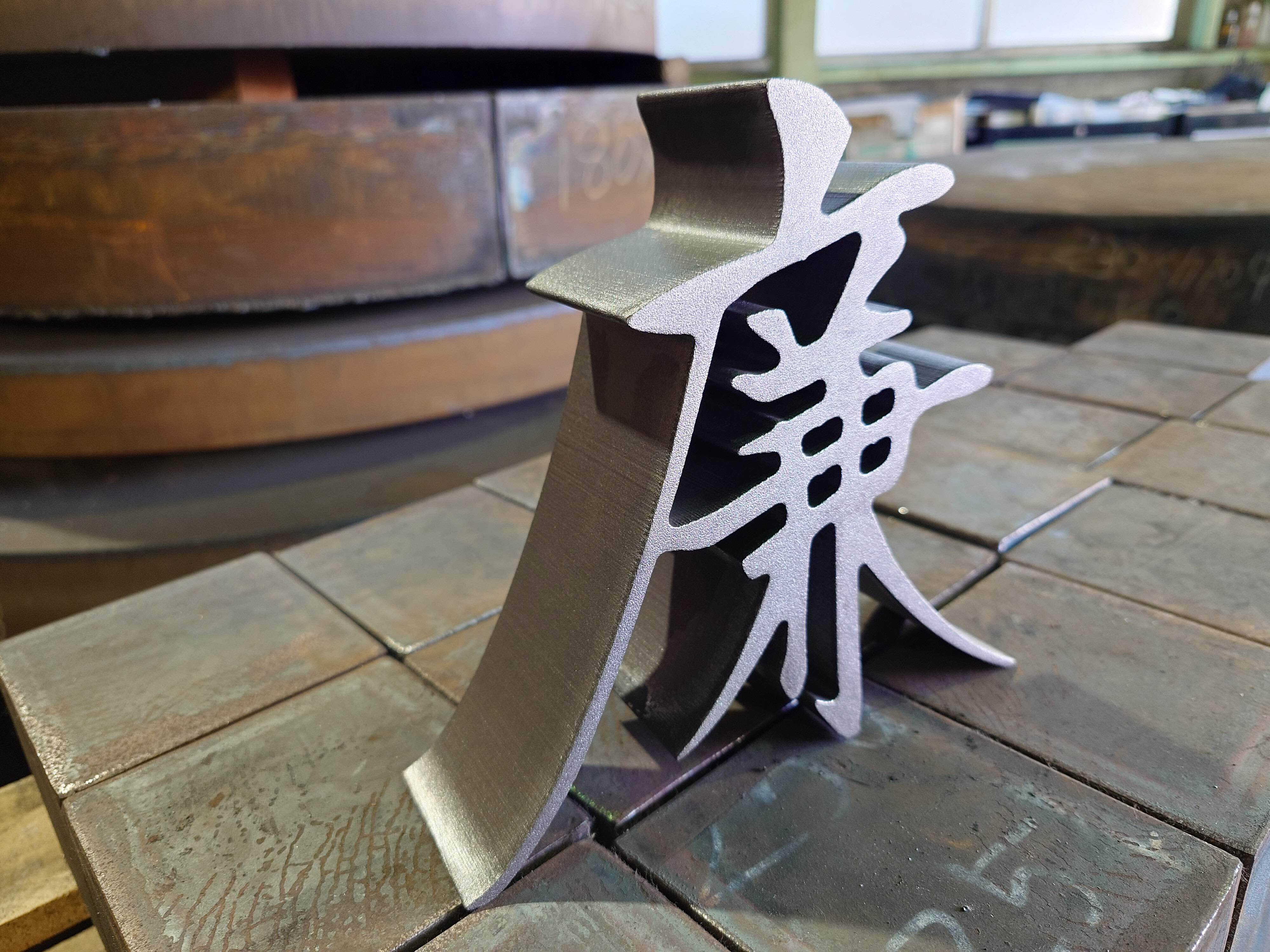 2025年11月1日放送の日本テレビ「キントレ」の浦安特集内で株式会社中村機材を取り上げていただいたときに、King&Princeの永瀬廉さんにプレゼントして大変喜んでいただいた極厚溶断鉄オブジェです。「廉」という文字の繊細さと力強さを活かしたデザインにしてみました。
